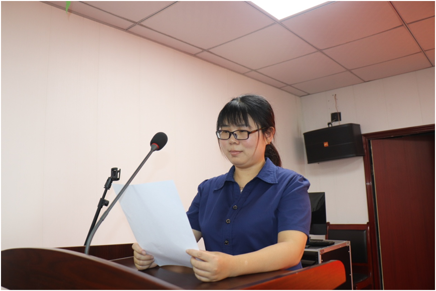 这是张茜在公司营销中心绩效考核工作会议上的发言照片