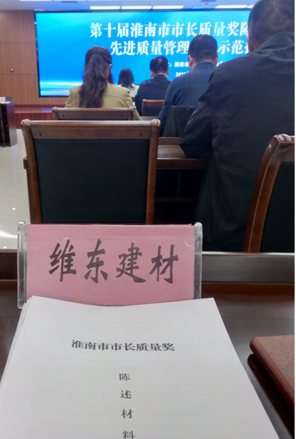 2023年10月10日,第十届淮南市市长质量奖现场陈述答辩暨先进质量管理模式示范推广会成功举行。淮南市政府副市长陆晞出席会议并担任评审组组长,成员由市政府副秘书长杨倩、市质量发展委员会部分成员负责人和省内外知名质量管理专家担任。淮南市纪委监委派驻淮南市市场监管局纪检监察组和淮南市市场监管局机关纪委全程监督。入围陈述答辩申报组织高层团队、各县区质量工作负责人和观摩企业代表等近百人参加会议,安徽维东建材股份有限公司行政副总叶敬忠到会观摩。