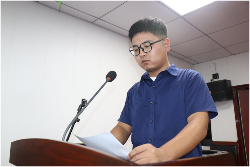 这是柏祝恒在公司营销中心绩效考核工作会议上的发言照片