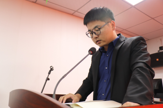 新任命的公司后勤保障部副主任吴然林上台表态发言