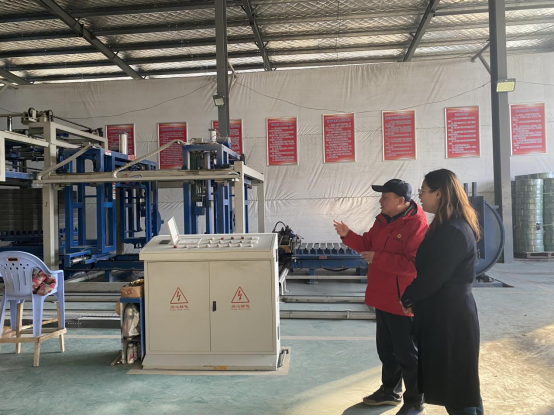 这是团县委书记徐梦亚(左二)在公司行政副总经理叶敬忠陪同下到建丰线车间了解生产经营情况。