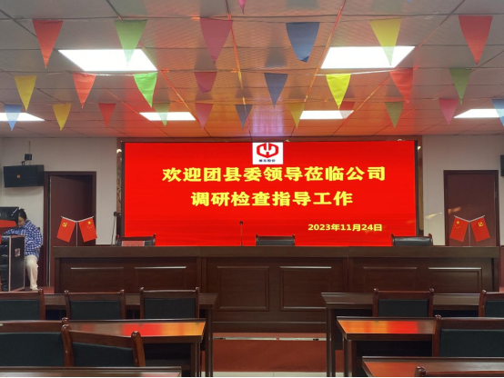 2023年11月24日下午,寿县团县委书记徐梦亚等一行团县委领导在三觉镇党委组织委员王琴、镇团委书记闫雪的陪同下来到我公司调研、检查指导我公司团组织建设工作,受到公司行政副总经理叶敬忠和公司综合办工作人员的亲切接待。
