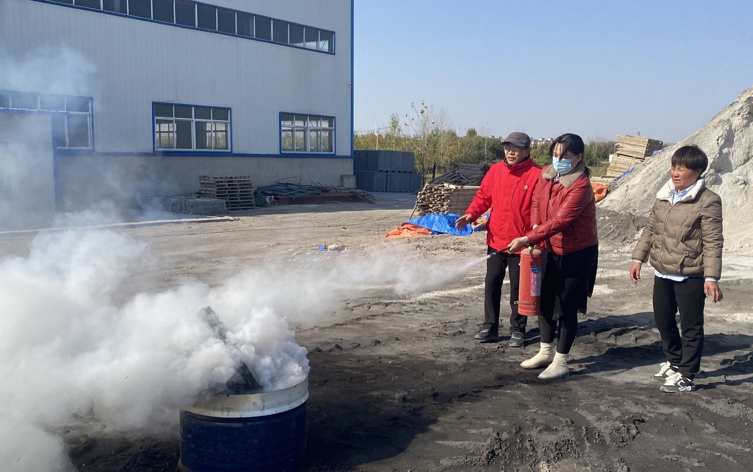 公司后勤保障副总经理张庆云练习灭火器灭火