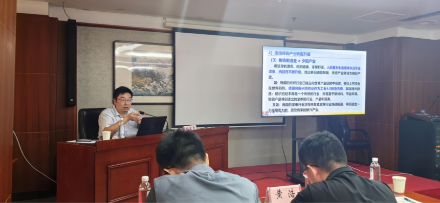 省经信厅投资与技术改造处梁敬永处长为全体学员做了《以数字化转型推动制造业高端化智能化绿色化发展实施方案及若干政策解读》辅导报告