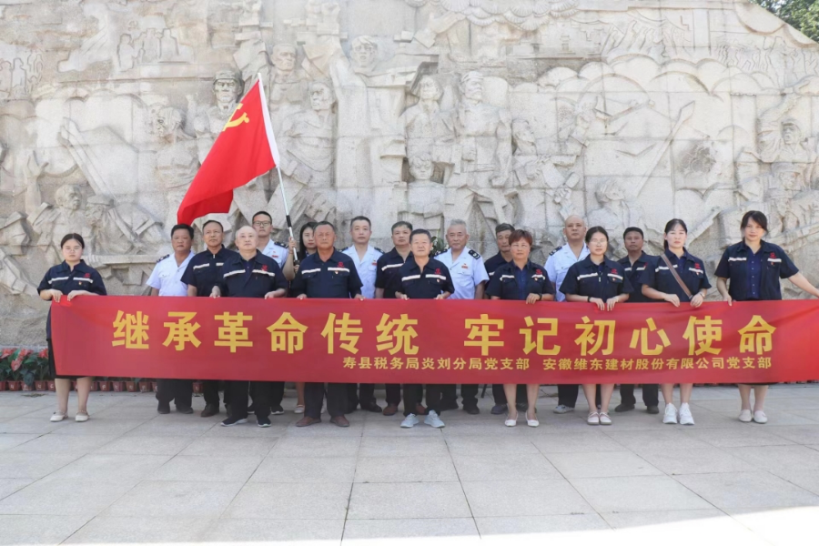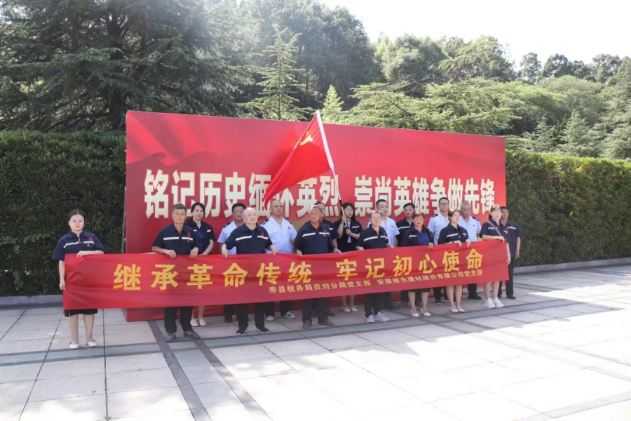 为缅怀革命先烈、弘扬革命传统,安徽维东建材股份有限公司与寿县税务局炎刘分局联合进行红色教育,组织公司党支部全体党员和入党积极分子前往蜀山烈士陵园开展主题党日活动。合肥蜀山烈士陵园位于合肥西郊风景秀丽的大蜀山东麓,占地107400平方米,是安徽省规模最大的烈士陵园之一,主要由“安徽革命烈士事迹陈列馆”、“大蜀山革命公墓”、“烈士纪念碑”组成。为了新中国的诞生,先烈们抛头颅、洒热血,前赴后继,在敌人面前宁死不屈,他们用自己的身躯和热血换来了新中国的成立,拯救了的劳苦大众,给人民百姓带来了幸福生活。我们要时刻牢记革命先烈的丰功伟绩,弘扬他们的革命精神,在学习和工作中不怕苦、不怕累,敢于担当,勇于前行。